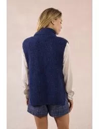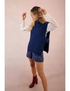 Molly Bracken Open Side Knit Sleeveless Turtleneck Sweater- Navy Blue