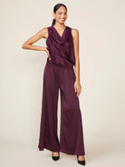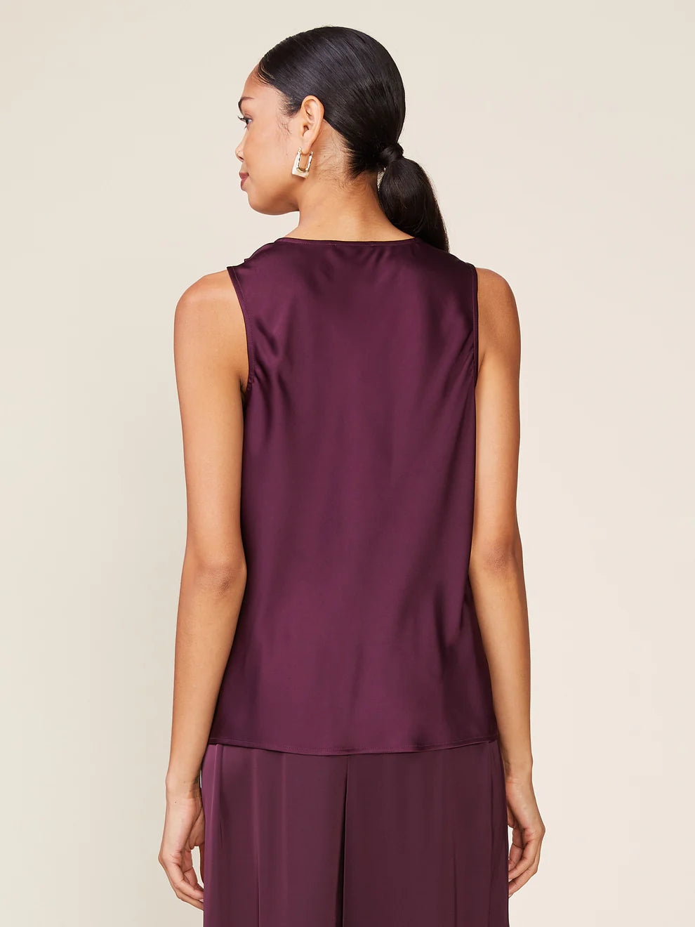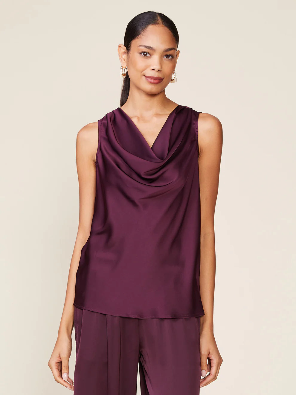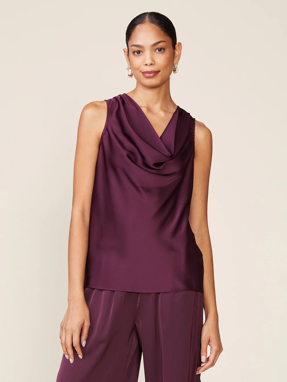 Anthem Shine On Satin Cowl Sleeveless Top- Maroon
