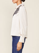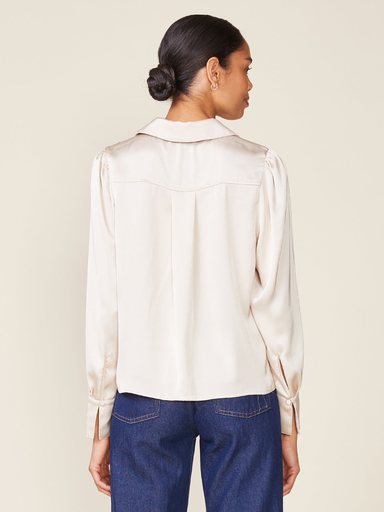 Anthem the Label Lace Yoke Long Sleeve Satin Blouse- Champagne