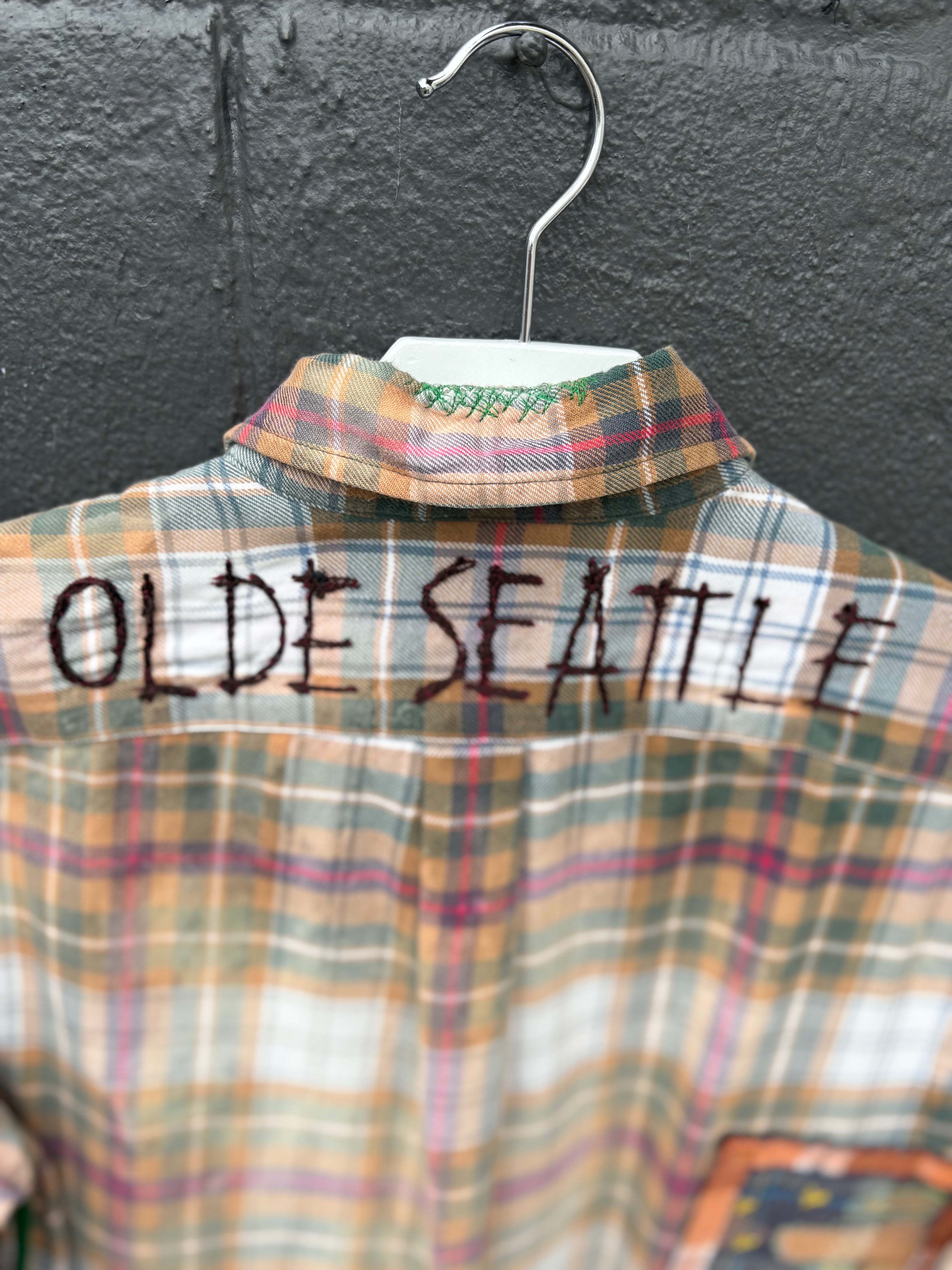 Blink Blink #16 Olde Seattle Custom Button Up Shirt- Grey/Peach/Cream/Green Trim