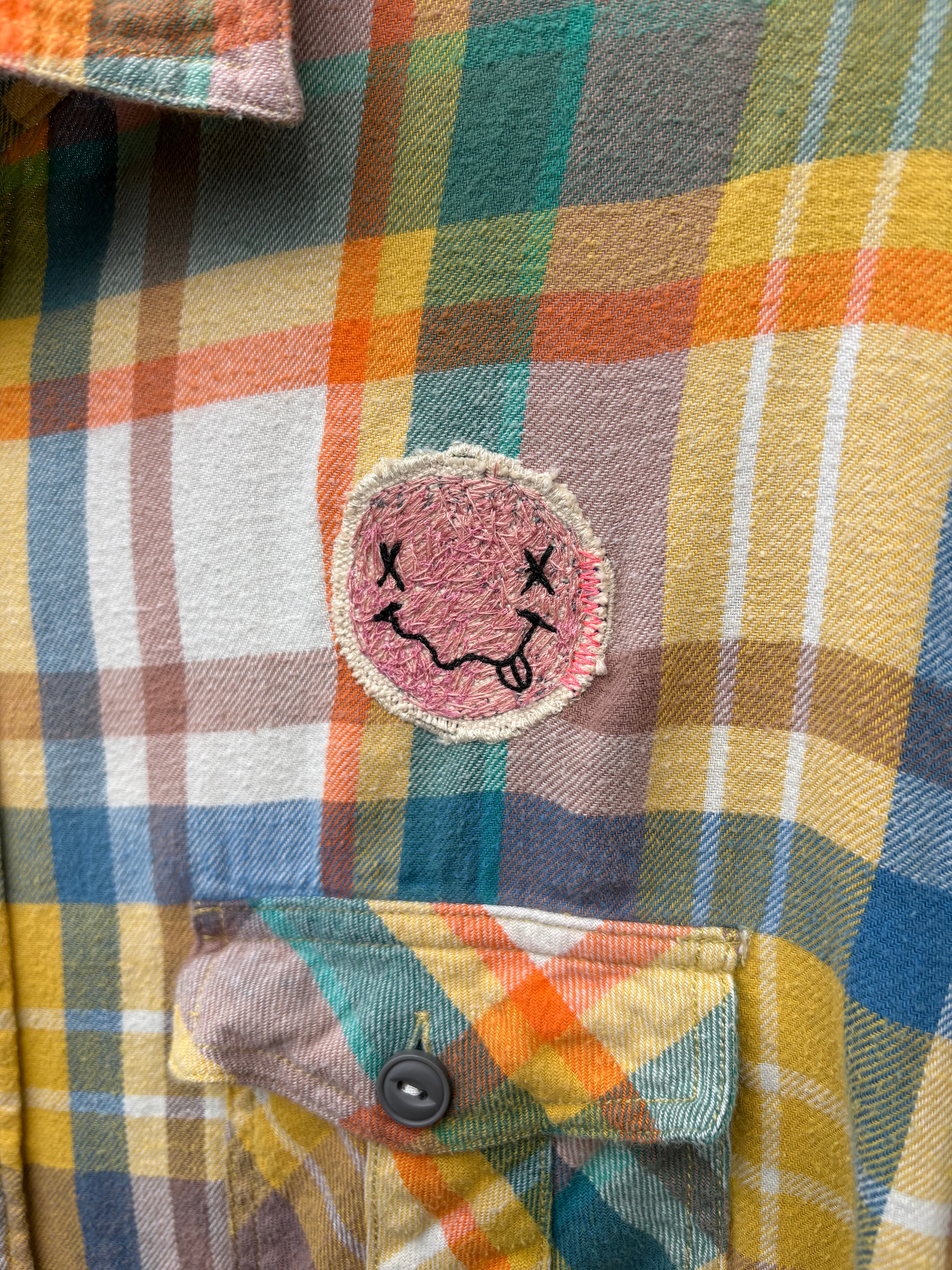Each Boyfriend Shirt is one of a kind, men's sizes because we have found that men's shirts are durable and when we do our stitching, men's fabric holds it better.
