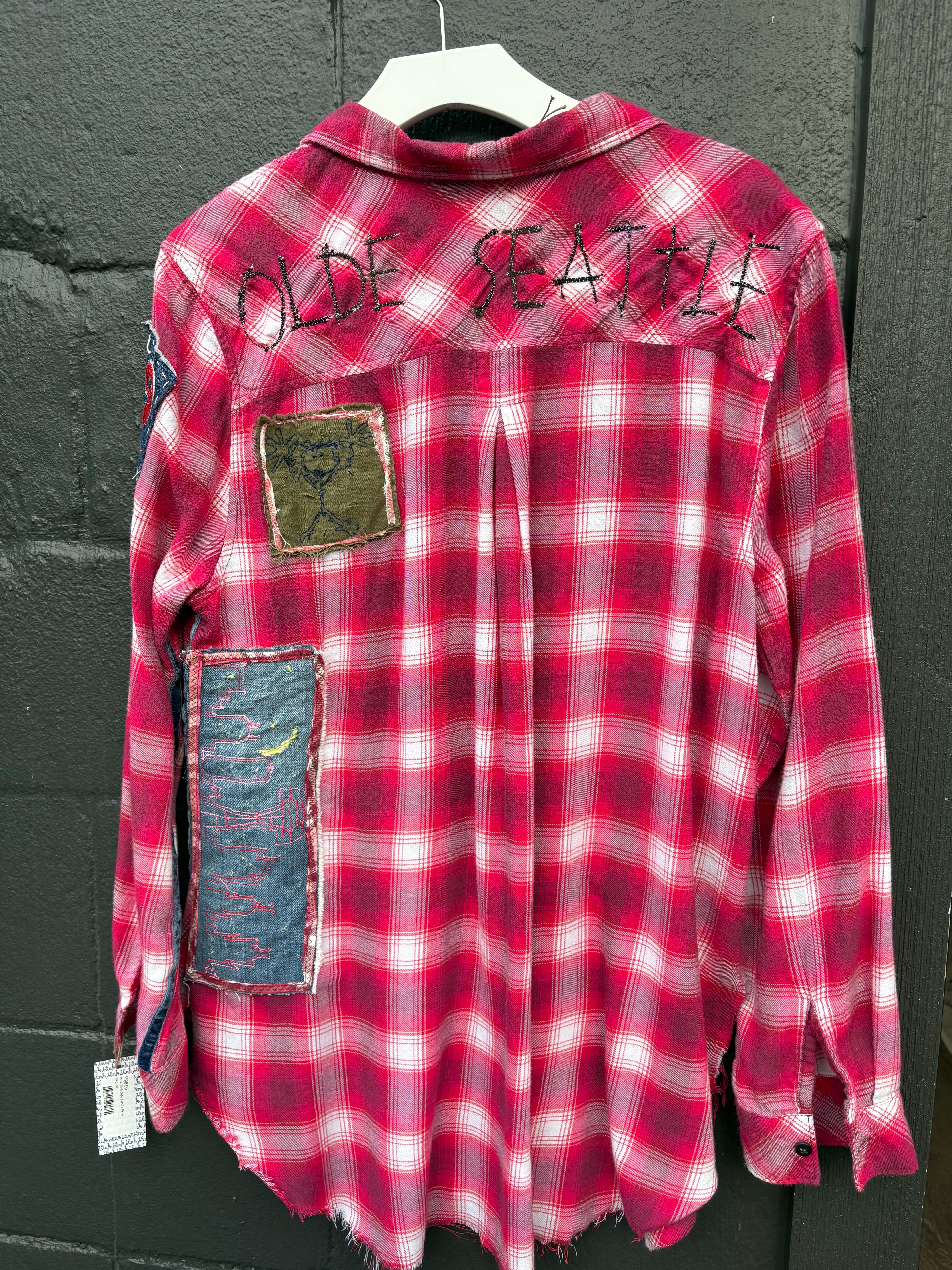 Each Boyfriend Shirt is one of a kind, men's sizes because we have found that men's shirts are durable and when we do our stitching, men's fabric holds it better.
