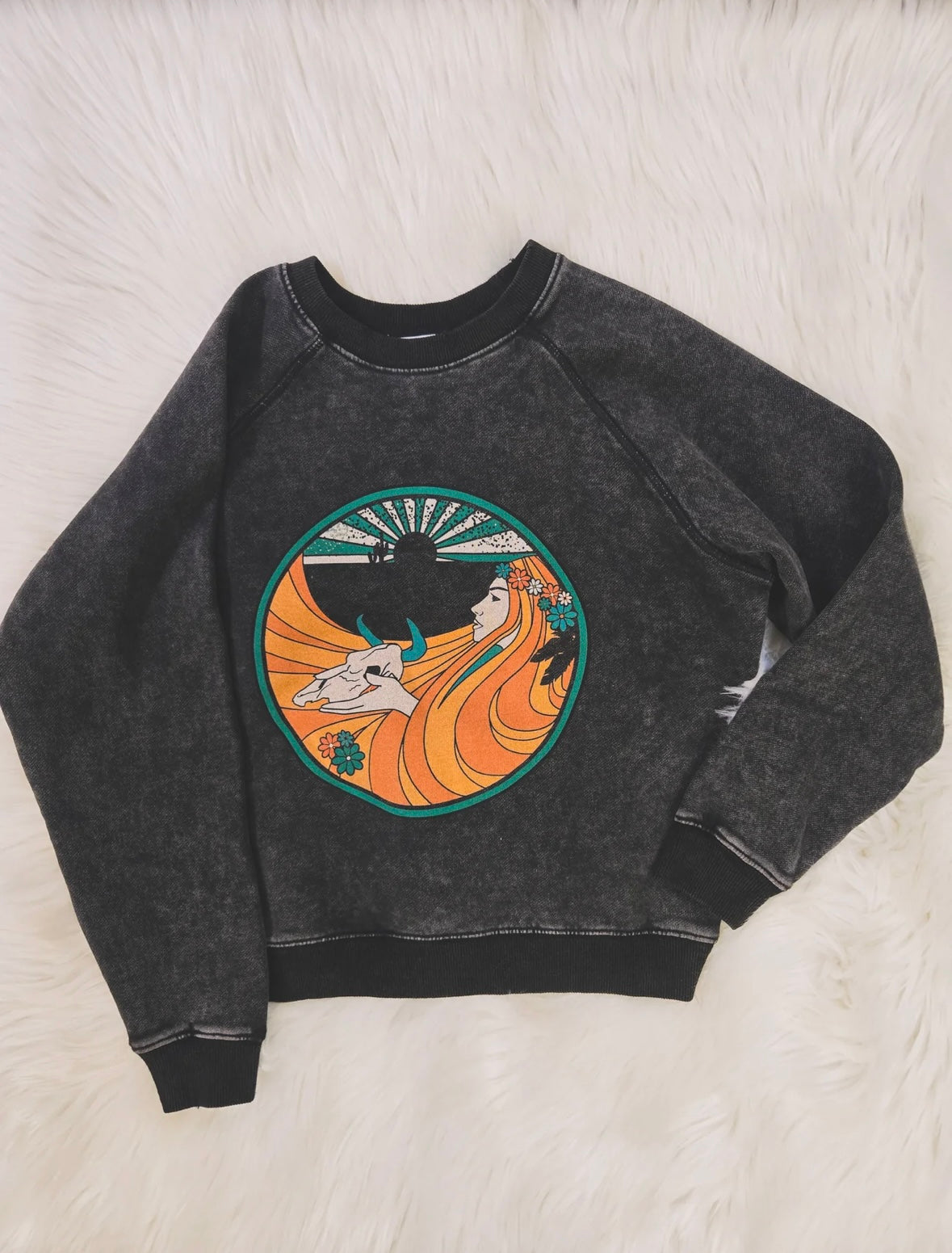 Classic Rock Couture Desert Child Raglan Sweatshirt Vintage Black