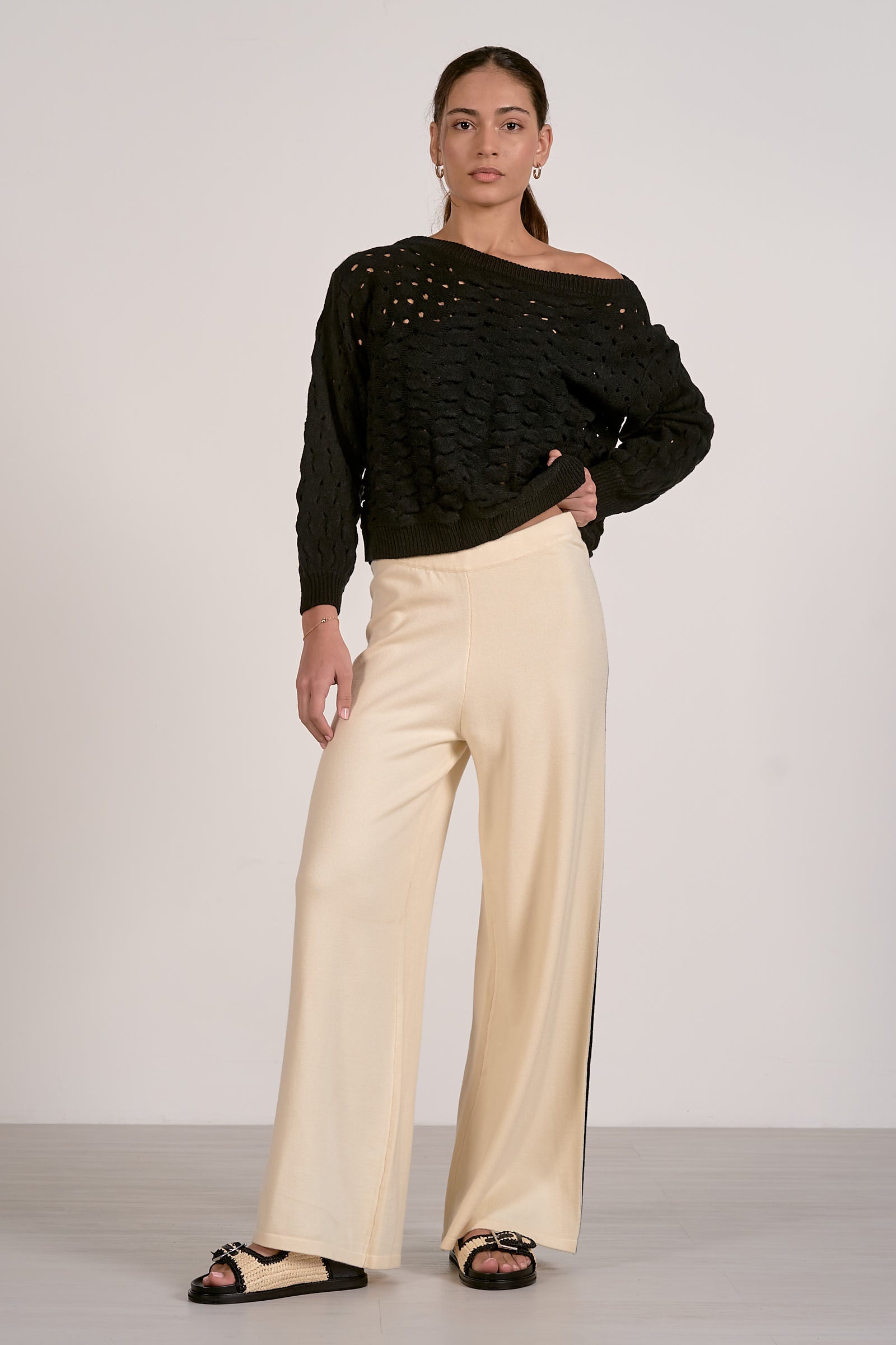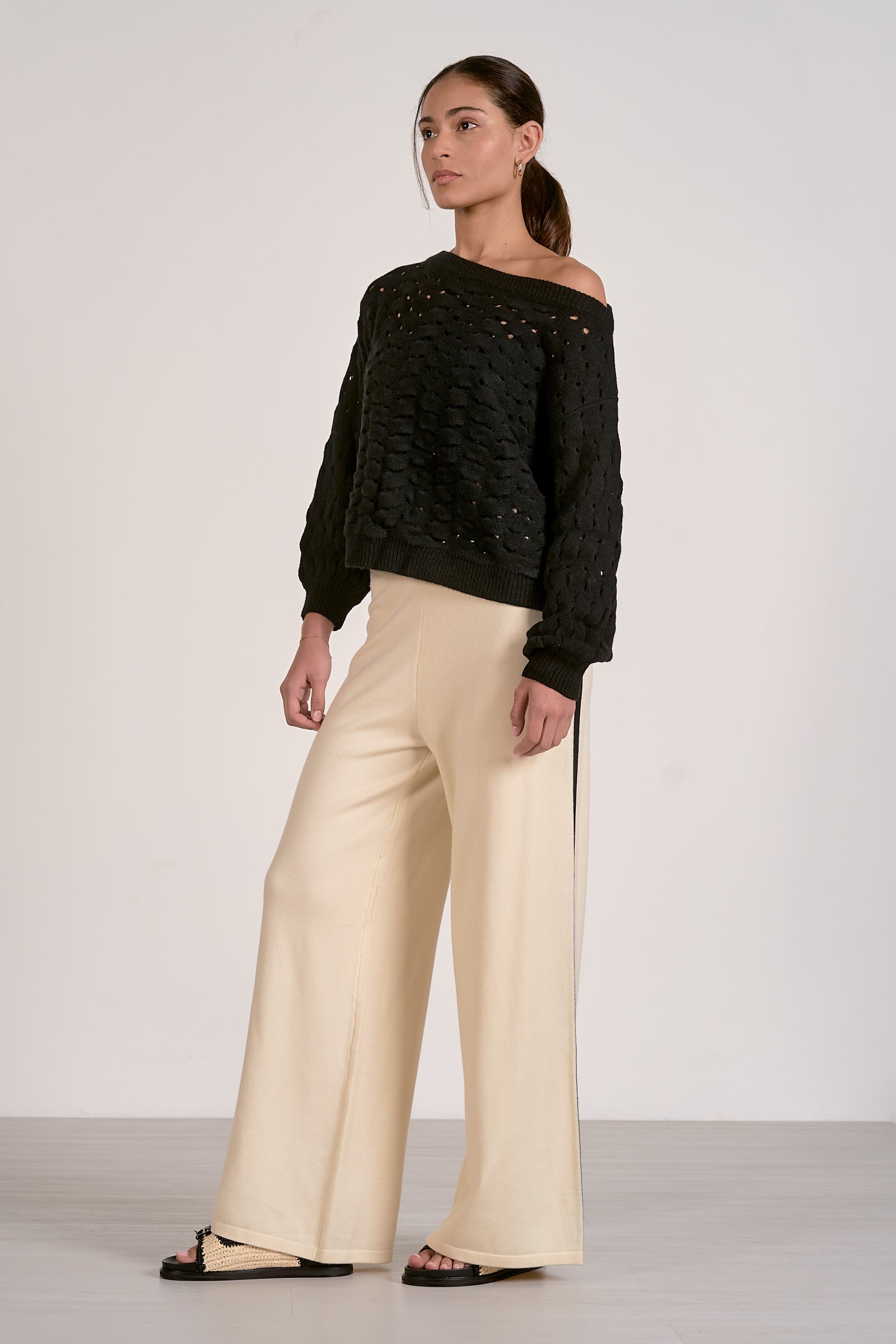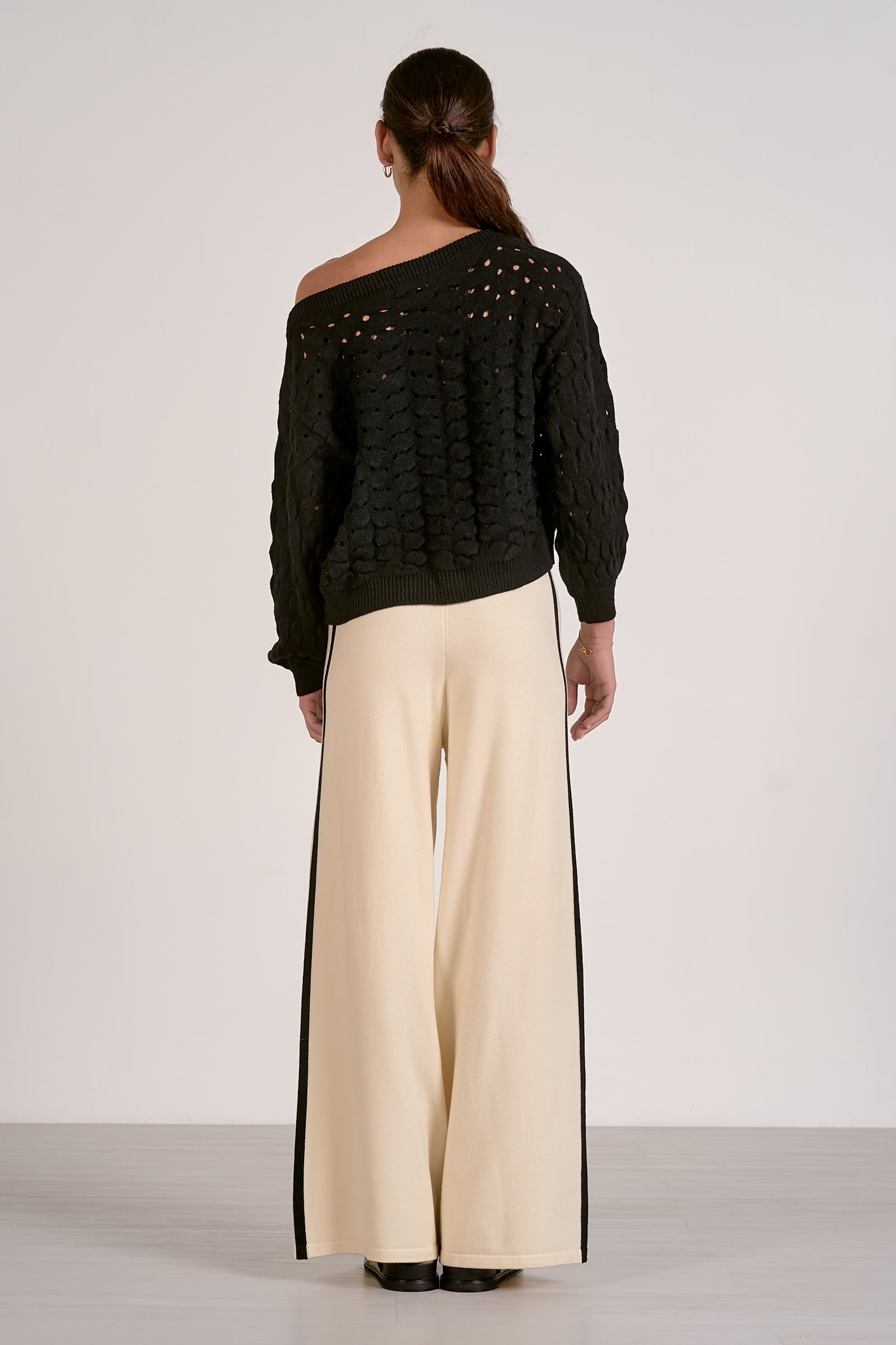 A bold take on open-knit texture. The Adrienne sweater features a wide neckline and oversized silhouette, made to drape effortlessly over your frame. Intricately stitched with airy dimension and soft structure, it’s the kind of standout staple that elevates your everyday.