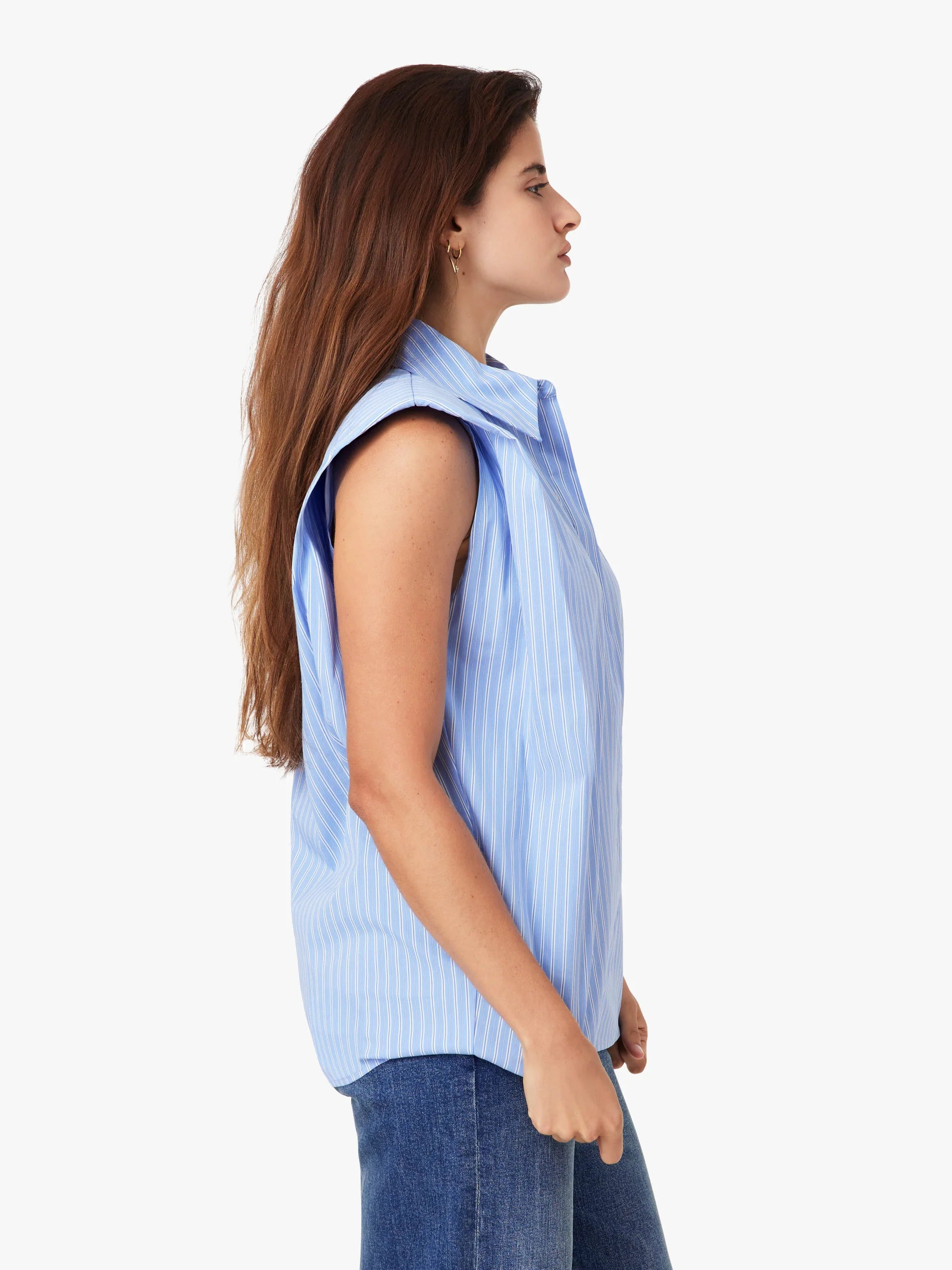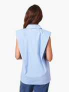 Habitual Sleeveless Shoulder Pad Shirt- Blue Stripes