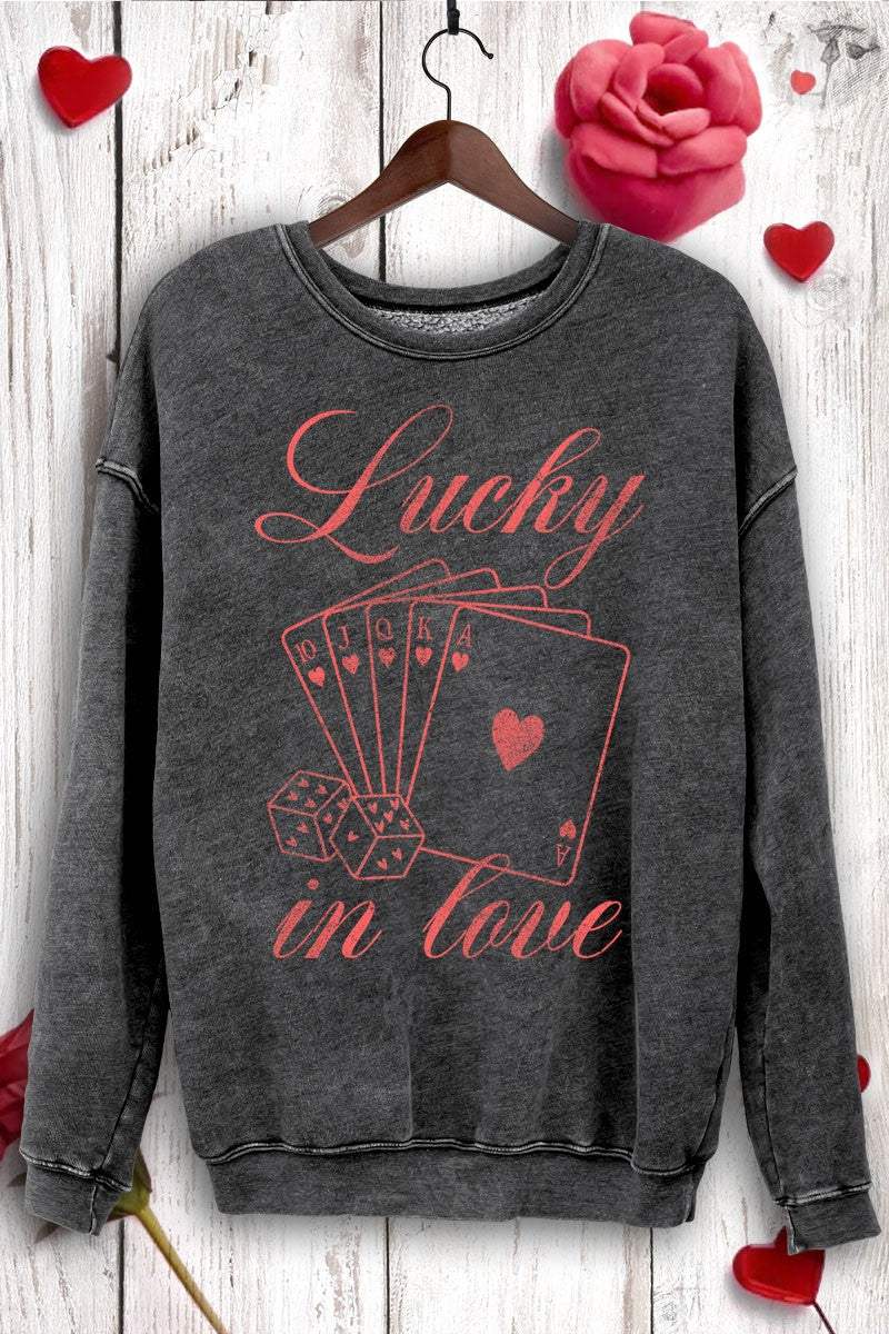 HRT & LUV Lucky In Love Mineral Graphic Sweatshirt- Mineral Black