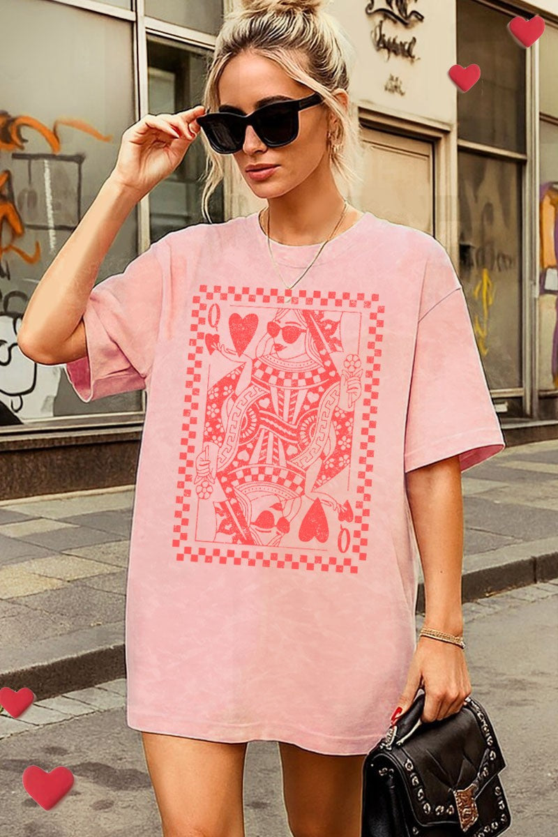 HRT & LUV Queen Of Heart Oversized Mineral Graphic Tee- Baby Pink
