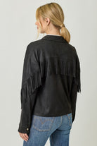 Mystree Fringe Back Detail Suede Shirt Jacket- Black
