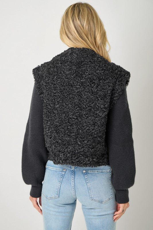 -Self 100% Polyester / Sweater 42% Acrylic, 30% Cotton, 28% Nylon / Contrast 92% Polyester, 8% Spandex / Lining 50% Polyester, 50% Rayon