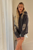 Stud Skull Sleeve Sweatshirt on Soft Hacci Brush