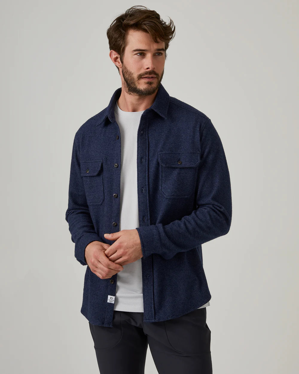 7 Diamonds Generation Long Sleeve Textured Soft Knit Shirt- Indigo