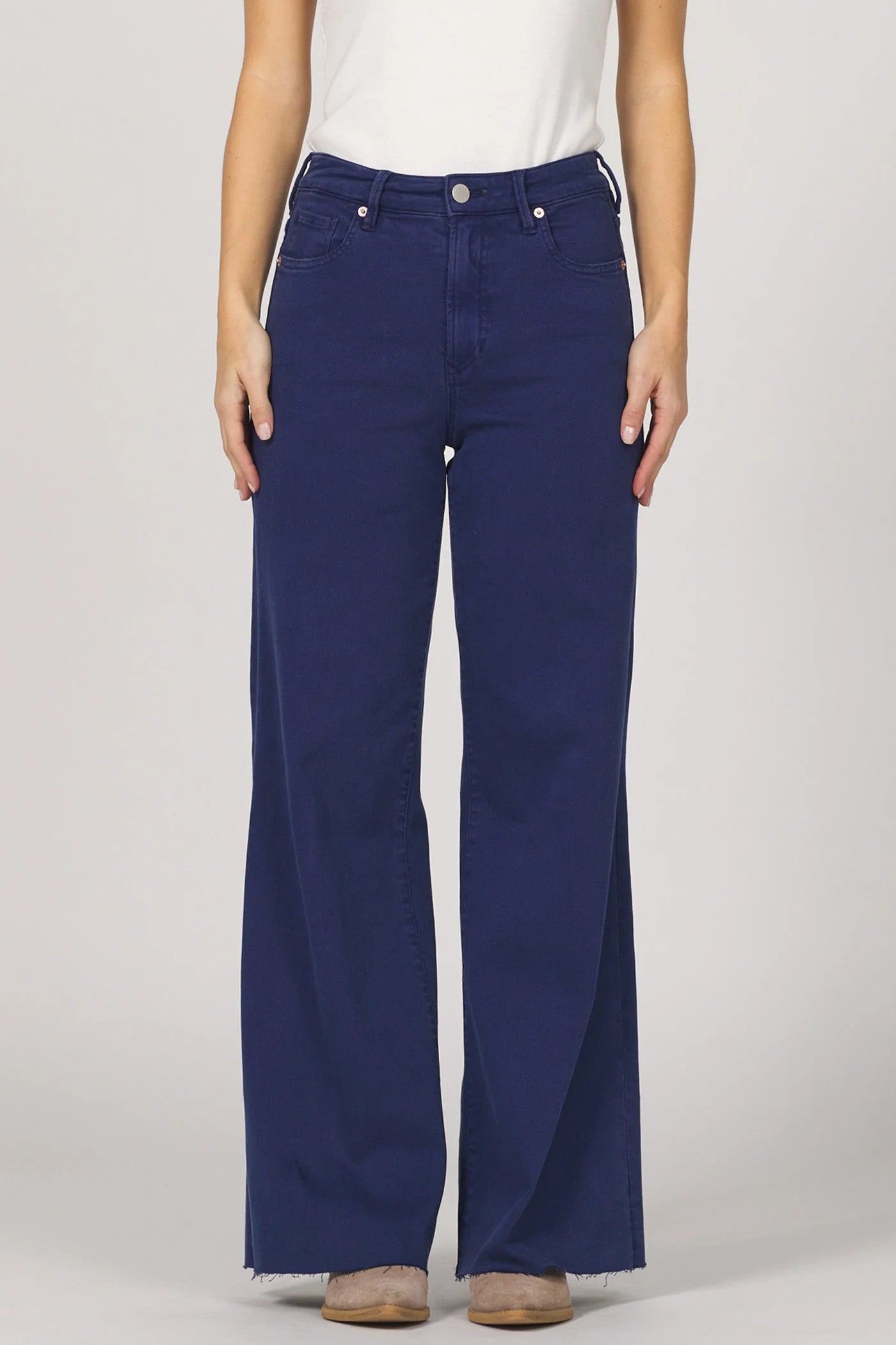 Effortless utility with the Fiona wide leg jean in seasonal colors.