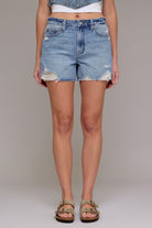 Hidden Finn High Rise Distressed Shorts- Medium Light
