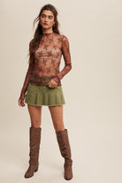 Listicle Lace Mock Neck Long Sleeve Layering Top