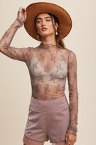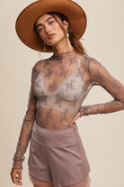 - Mesh Embroidery Lace layering top - Mock neck - Long sleeve - Stretched light weight sheer fabrication
